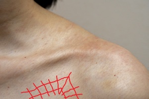 | 2024/12/13 | ![]() 鎖骨の下(赤い線で図示したあたり)を、反対側の手の指でグリグリと押したら、 思ったより痛い(片方だけ痛いこともあります)という人は、 巻き肩⇒四十肩・五十肩(肩関節周囲炎)に注意してください。 |